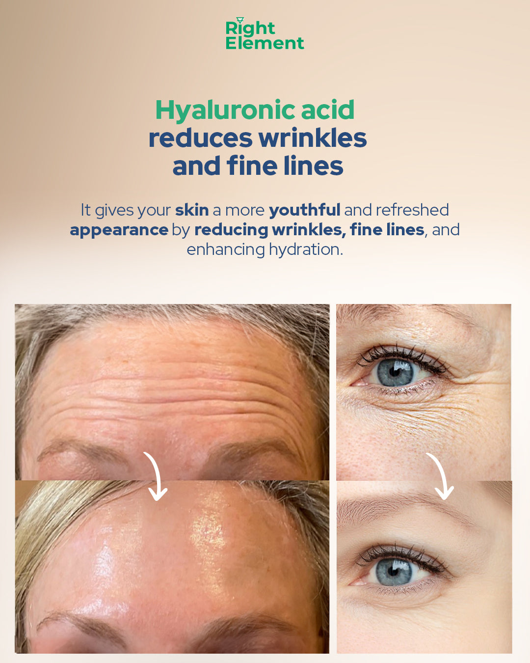 Hyaluronic acid works synergistically with collagen by helping to retain moisture in the skin, thereby enhancing its plumpness and elasticity.