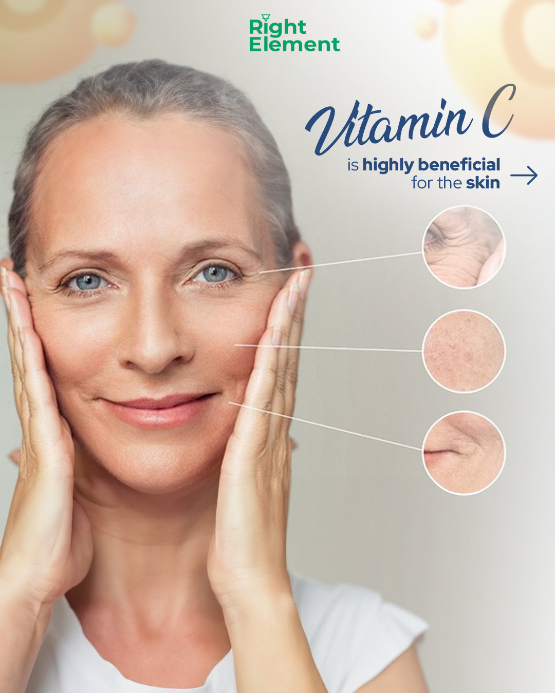 Collagen Production: Vitamin C is crucial for collagen production, a protein that provides structure and strength to skin, hair, and nails. Collagen levels decrease with age, leading to wrinkles, sagging skin, and brittle hair and nails. By boosting collagen production, Vitamin C helps maintain a youthful appearance.