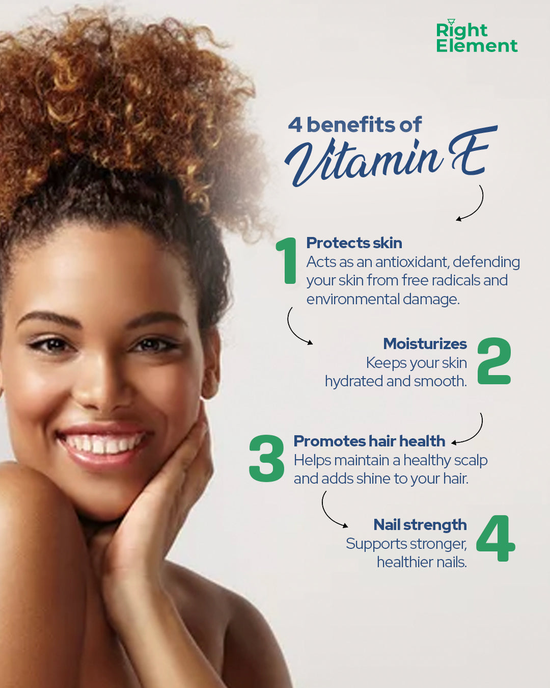 - Nails: Vitamin E strengthens nails, reducing the risk of breakage and splitting. It also promotes healthy nail growth and reduces dryness and brittleness, enhancing the overall appearance of nails.